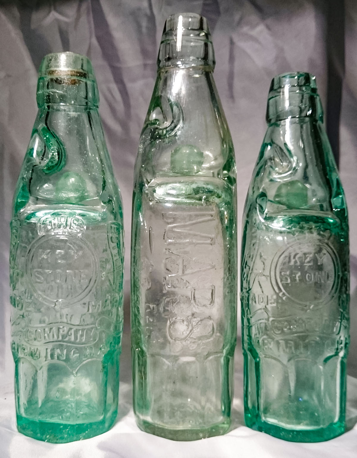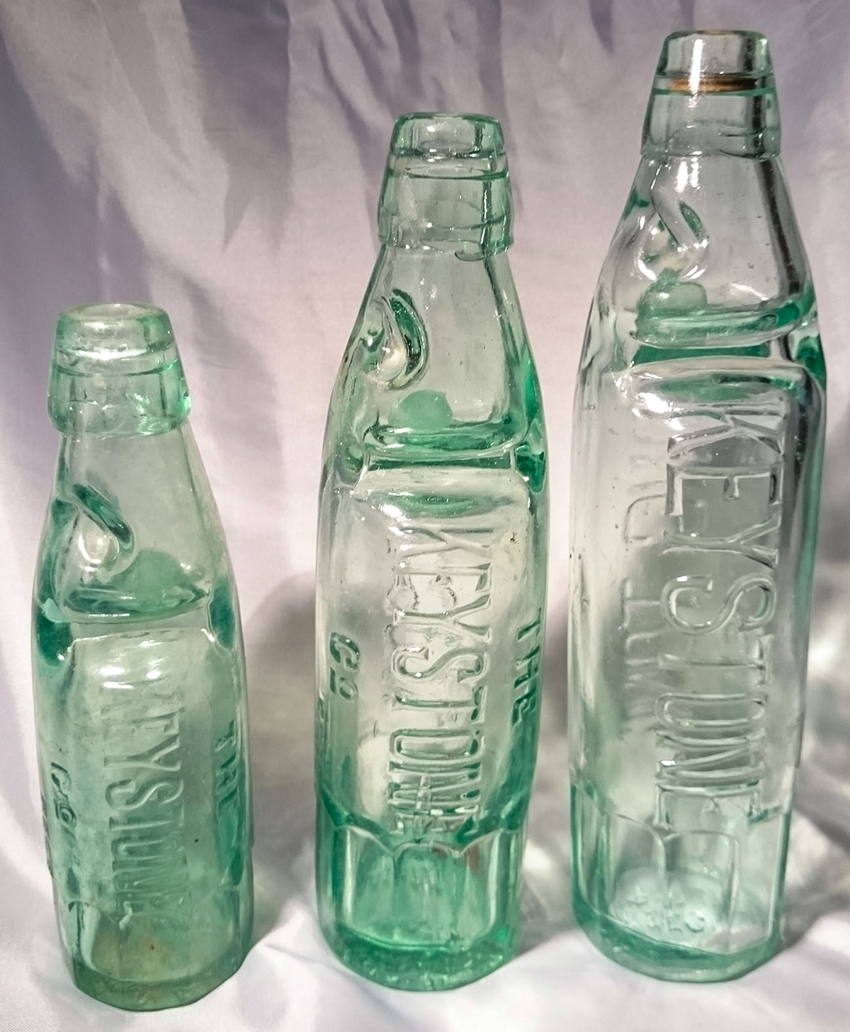 glass: embossed around base: "KEYSTONE COMPANY FISHPONDS BRISTOL"