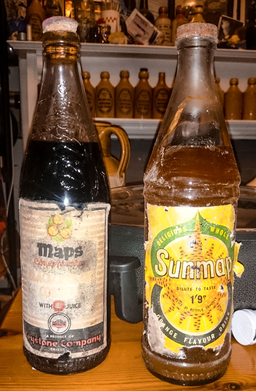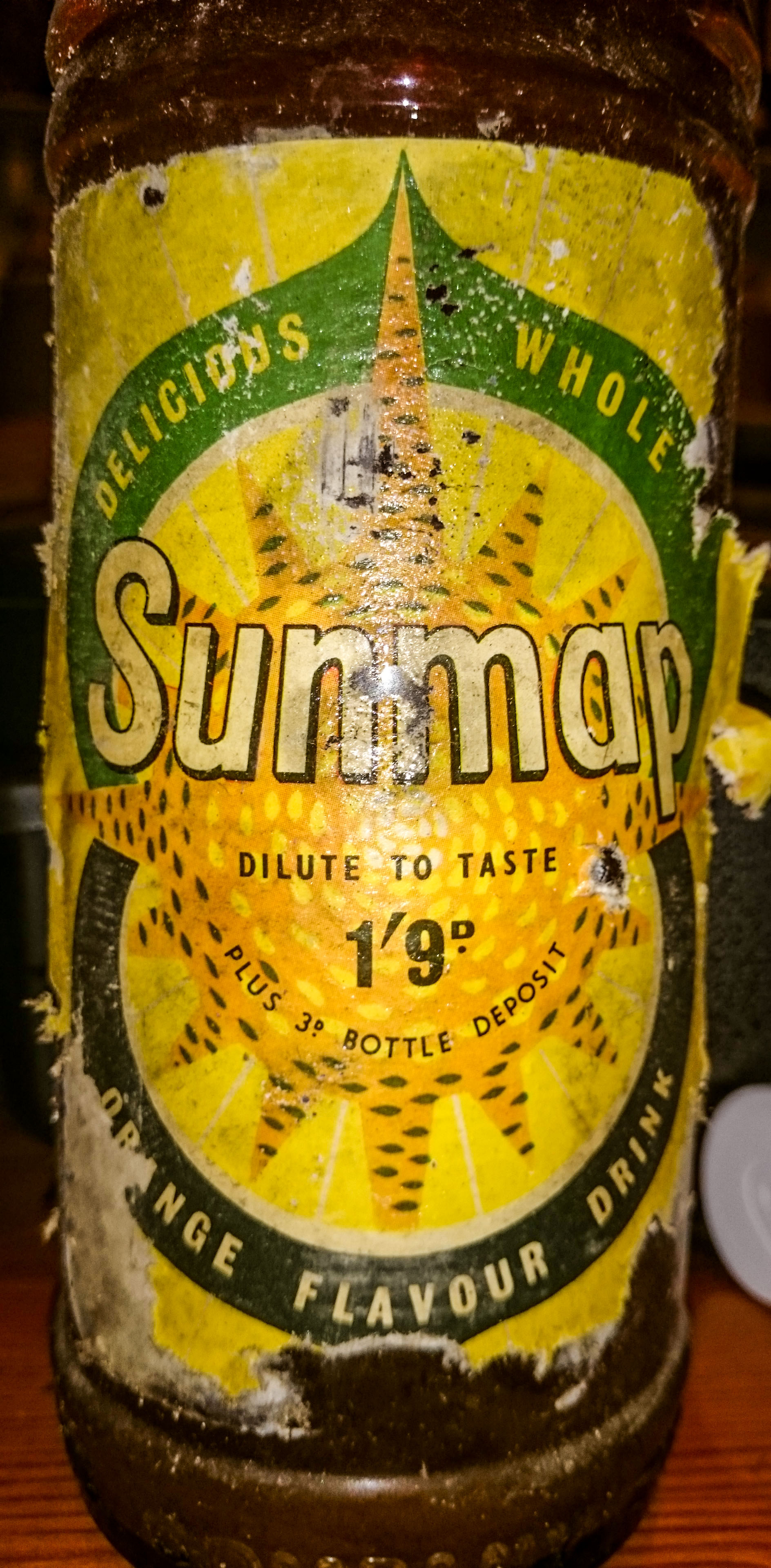 later versions are plain and screw cap. Sunmap Orange squash is
