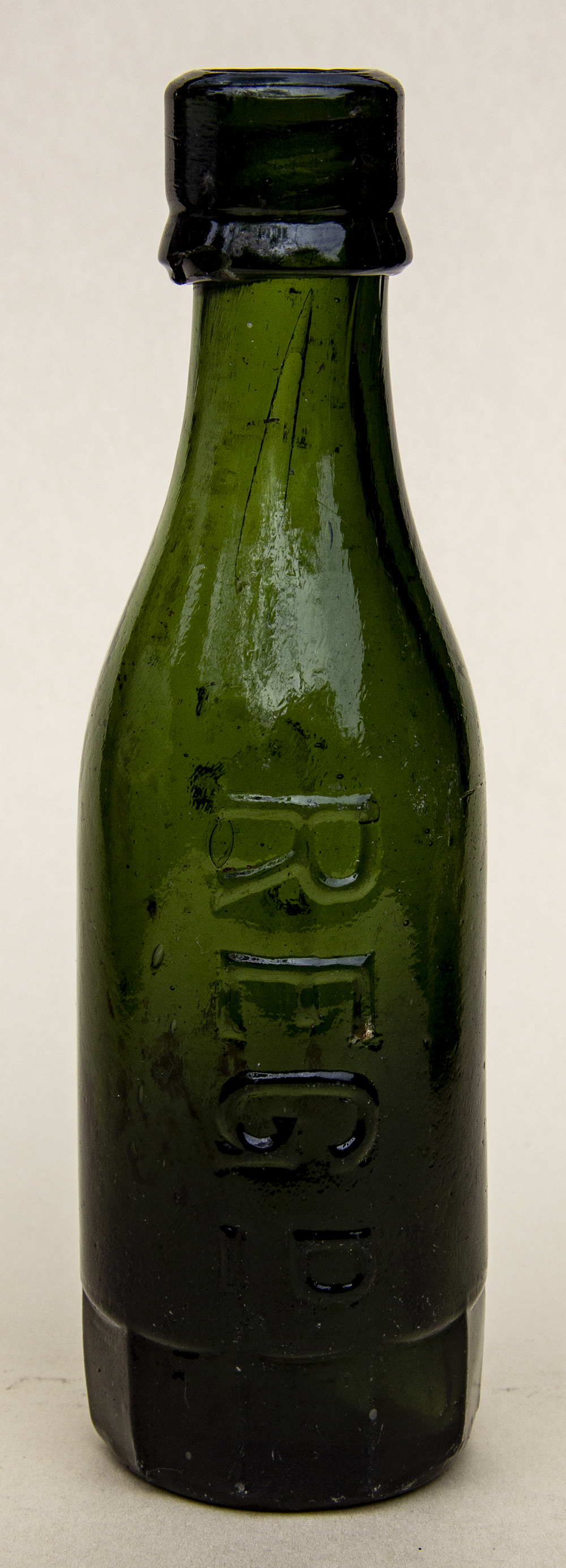 10 sided mug-base, Dark green glass. REGD No