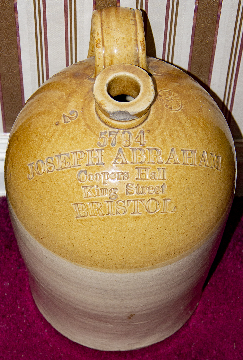 JOSEPH ABRAHAM / Coopers Hall / King Street / BRISTOL. Number: 5794. Potter:Price + Bristol, 2 tone glaze jolly-bodied jar. "2" opposite potters mark. |