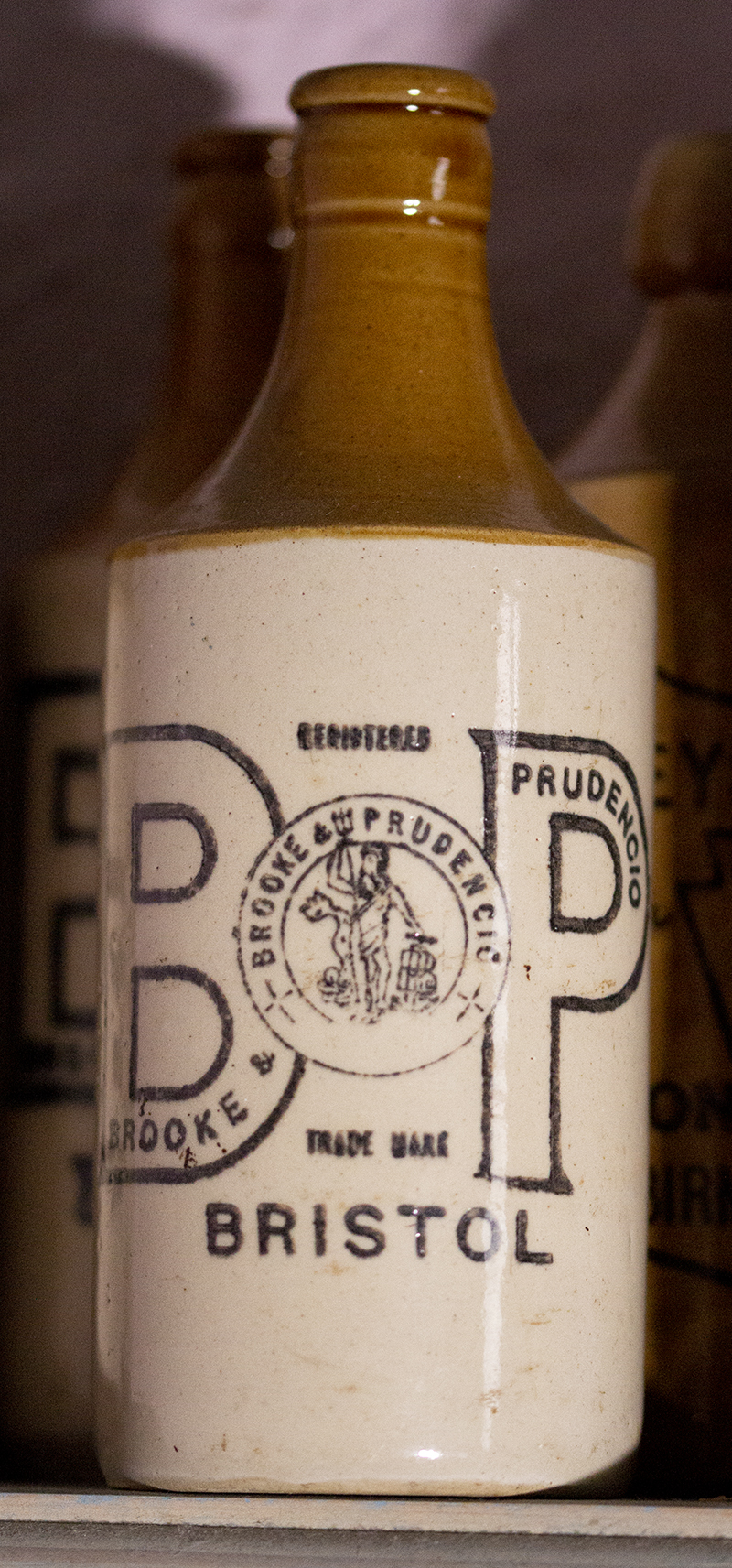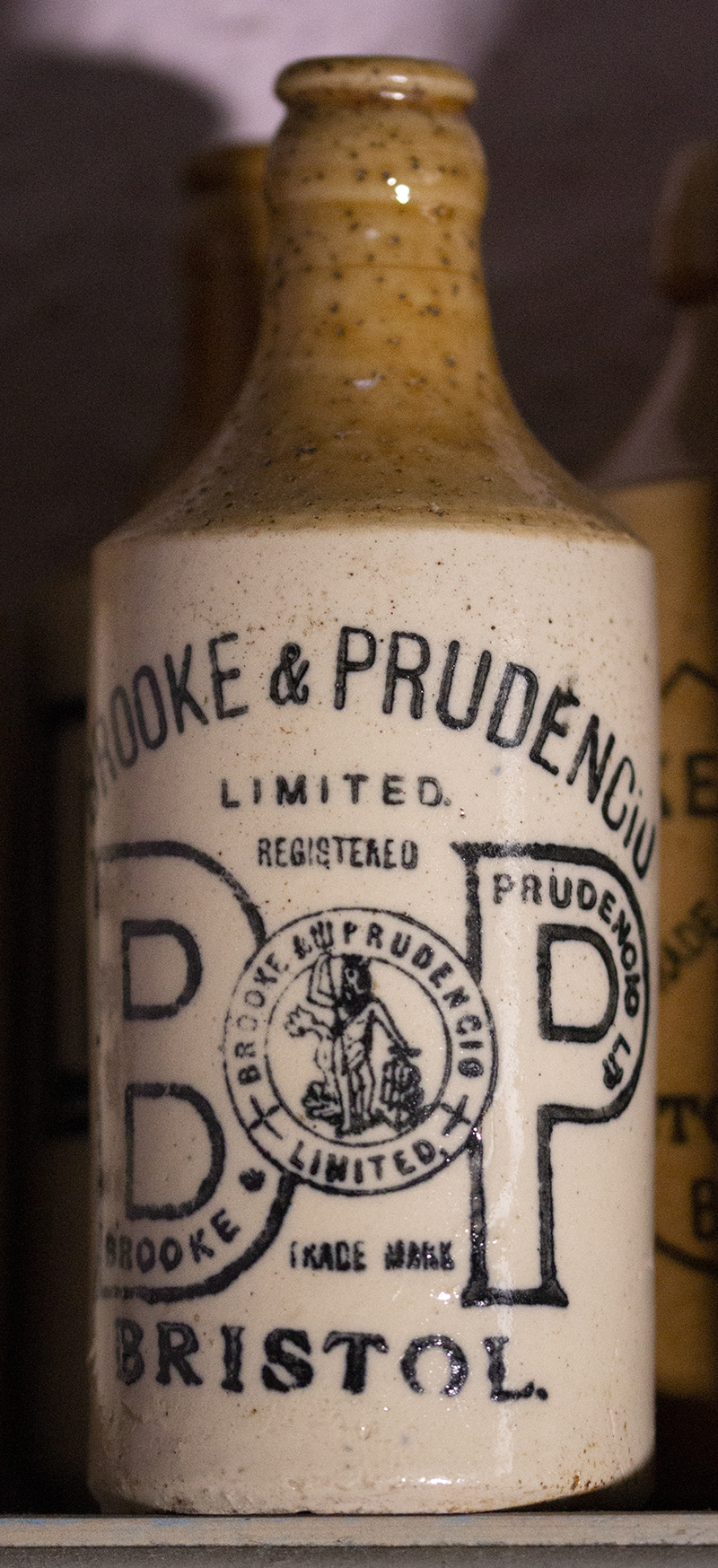 PRUDENCIO / LIMITED / in arch. B & P logo with small Neptune trade mark in center. / BRISTOL Potter: Price Bristol, 2 tone glaze. Crown cap. |