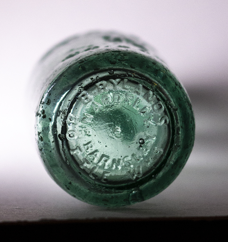 trade mark / BRISTOL. "LIMITED" suggests pre-1920. Aqua Glass. Glassworks: ? |