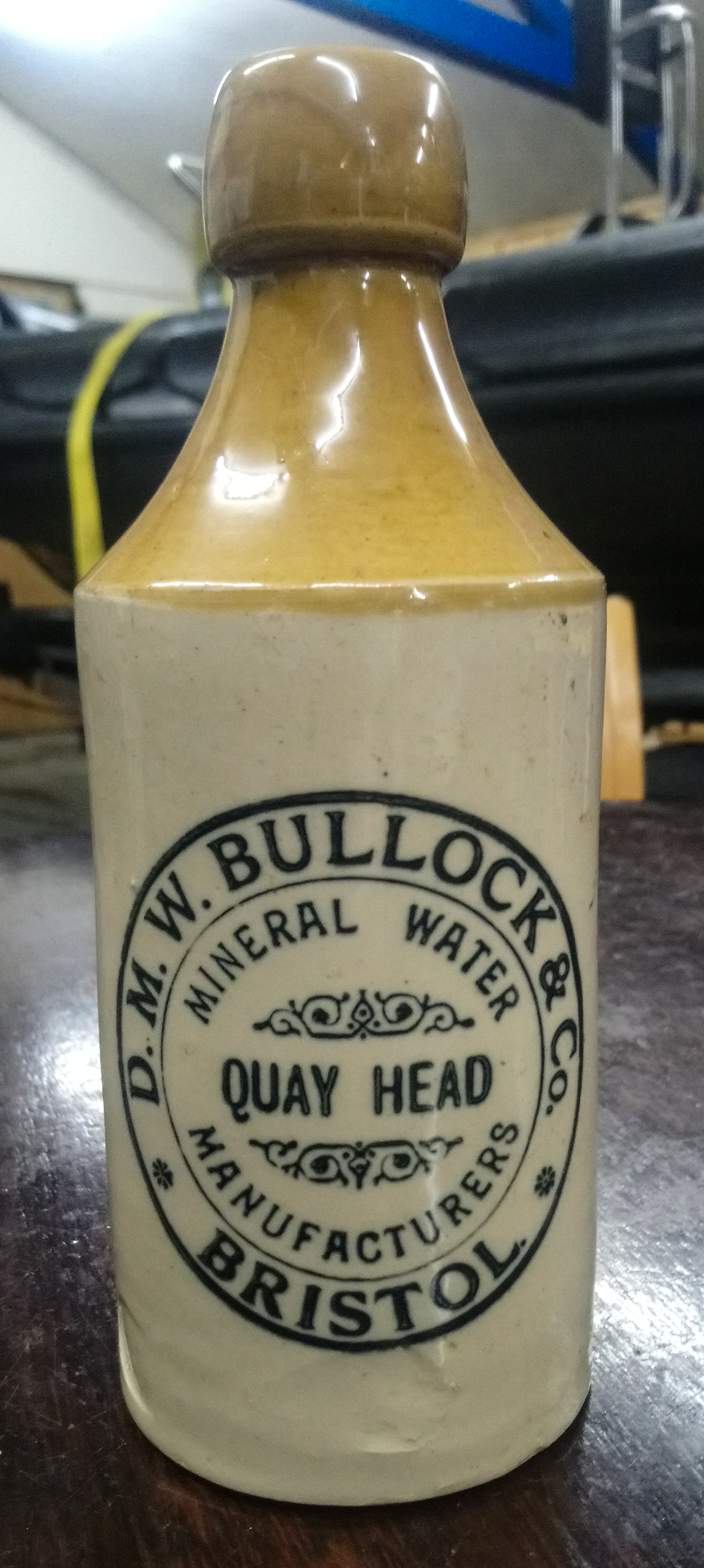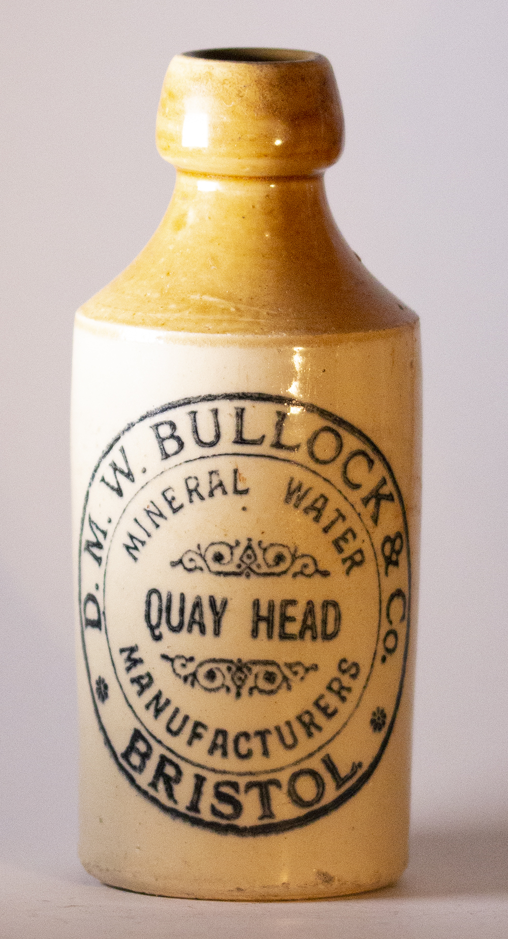 oval: D. M. W. / BULLOCK / & Co. / BRISTOL. Glassworks: not marked. "B" in triangle on base. Bottle courtesy Andrew Ward. |