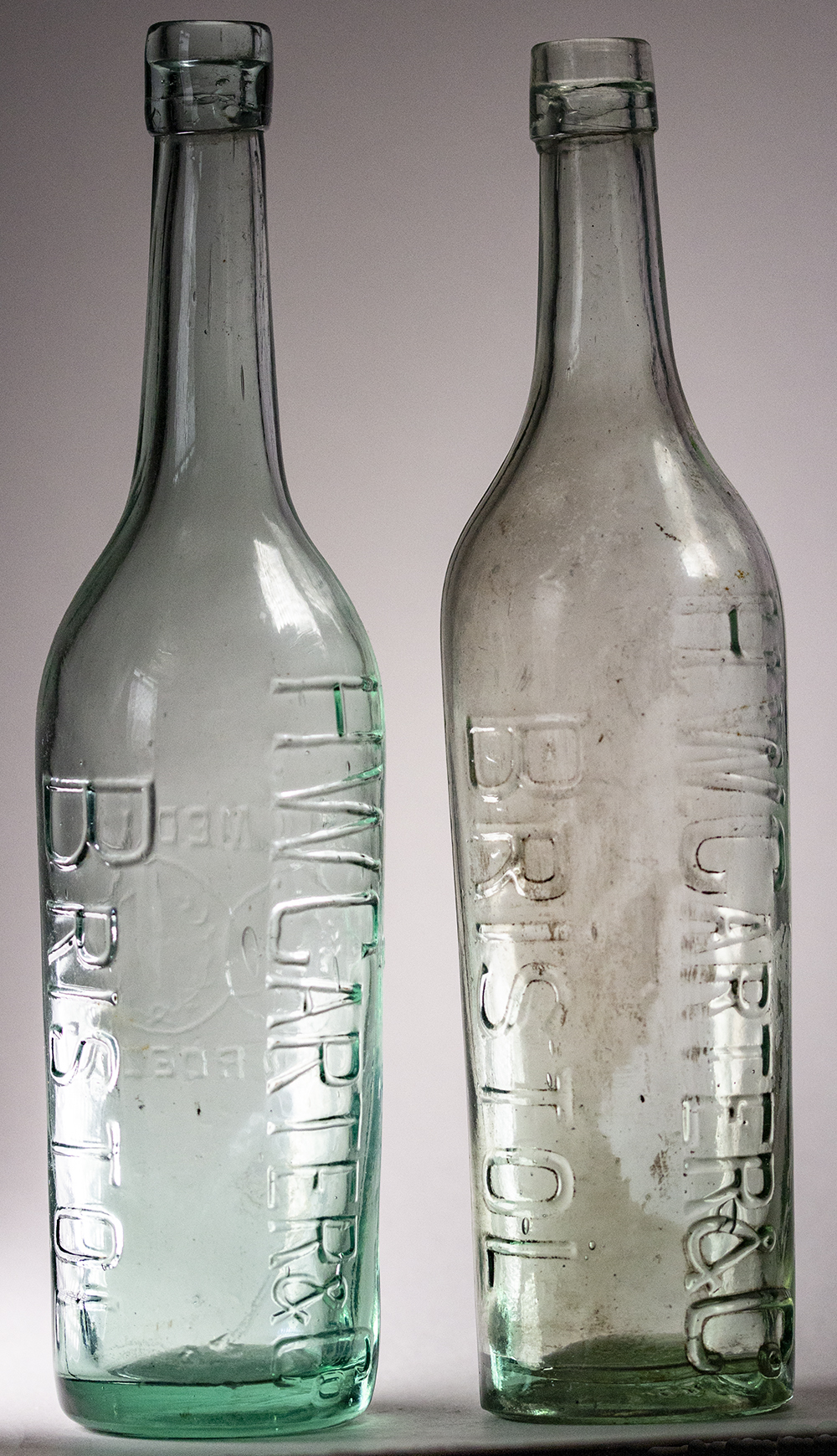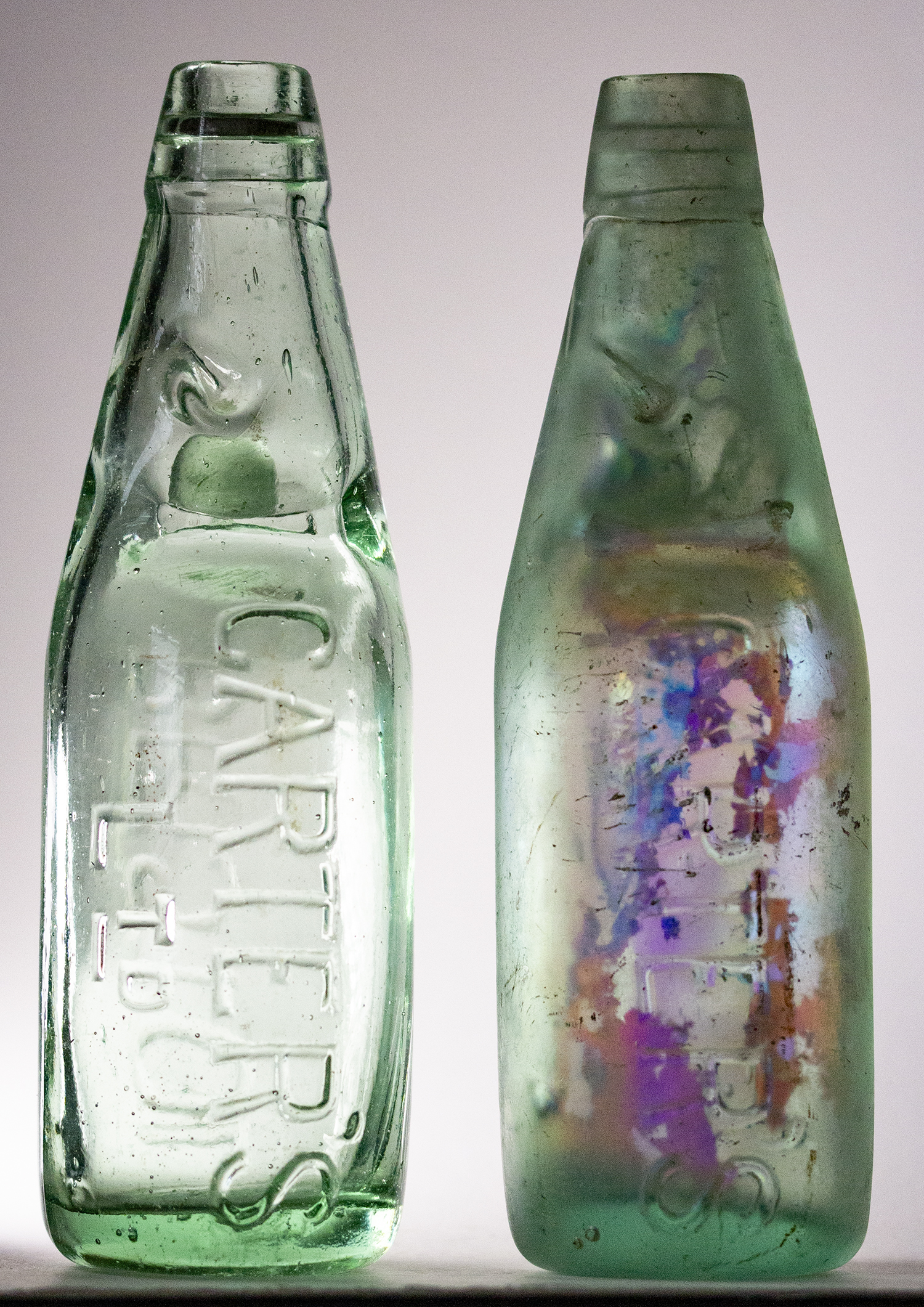 or CARTER'S / BRISTOL (right, with iridescence). Glassworks: Dan Rylands Ld. 4 Sole Makers, Barnsley (on base). |