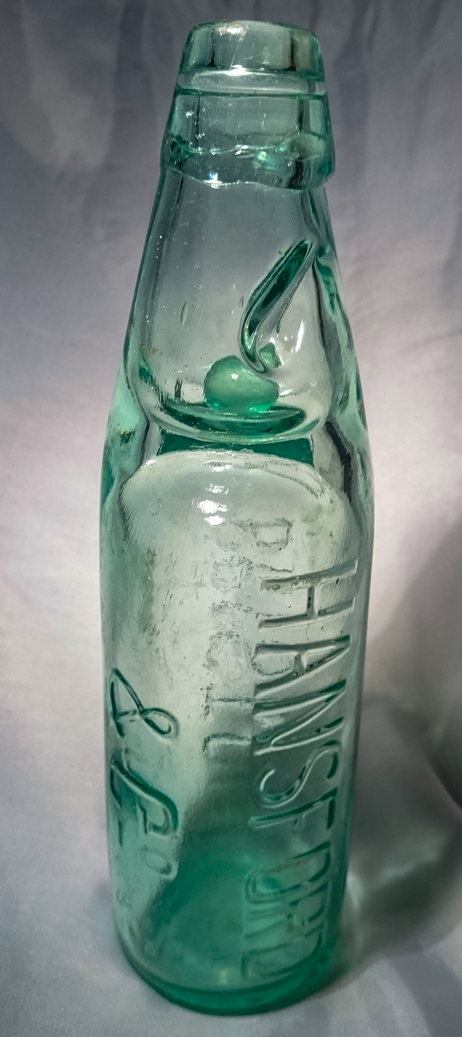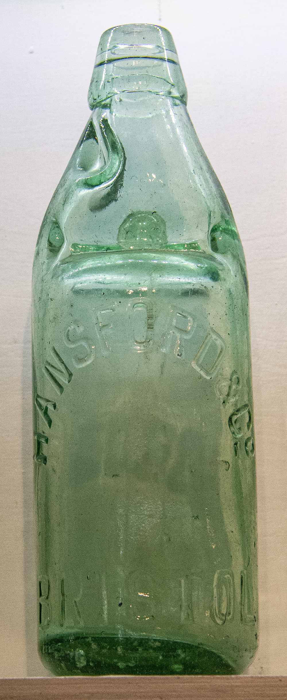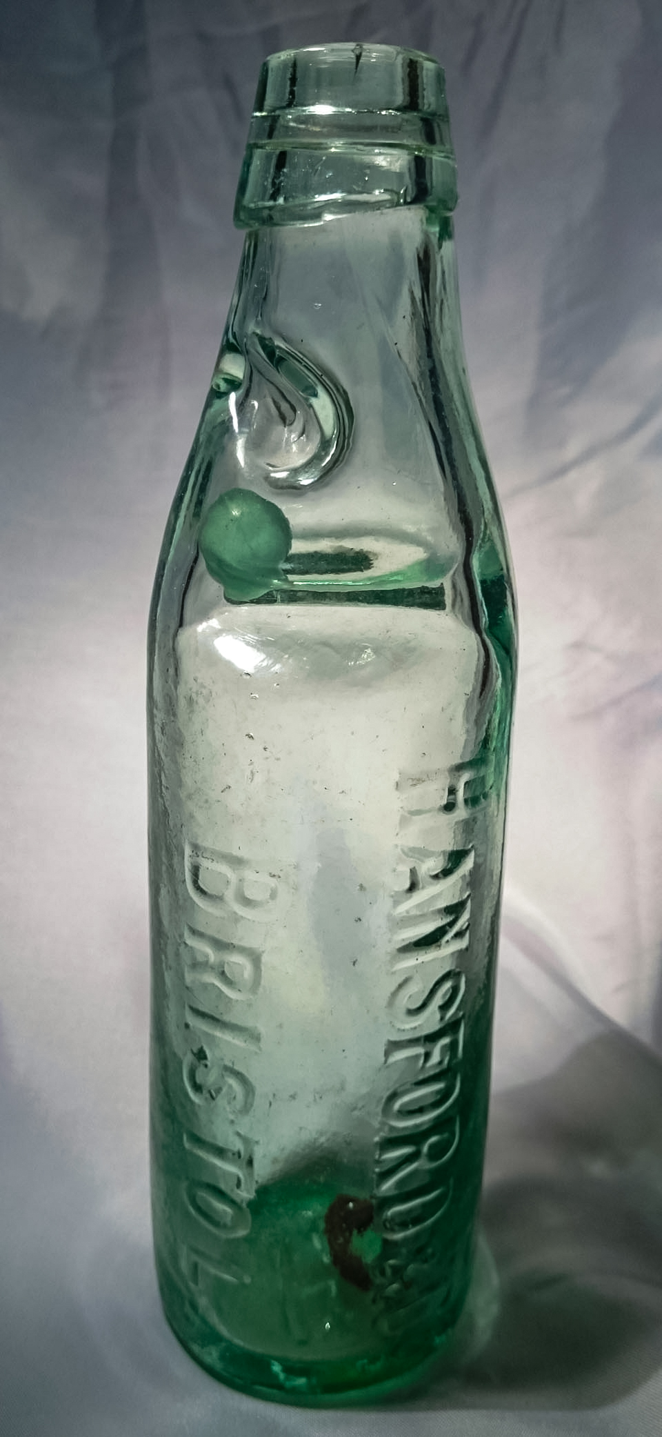 Robert Frederick Hansford was born in 1860/61 in Walditch, Dorset and baptised 13 Jan 1861, son of Daniel Hansford and Marianne Hardy, who were married at Bothenhampton, Dorset, 14 June 1847. In 1881 Robert was a warehouseman still living in Walditch. By 1891 Robert is a Mineral Water Manufacturer living next to the Engineer's Arms, at 16 Lincoln Street, St. Philip & Jacob, Bristol, with his wife Amelia. Robert had married Amelia Jemima Holt Bugler of Broadwindsor, at the Gospel Hall, St. Nicholas Road, Bristol, 27 May 1884. By 1899 Robert is established in the business enough to have become a member of the Bristol Bottle Exchange. Amelia, Robert's wife, died in 1921 and was buried on 24 Dec. in Walditch, Dorset. Robert remarried in 1923 to Edith Ethel Elizabeth Lewis (1885-1947), in Paddington, London. Robert died at Charing Cross Hospital, London, on 18 Feb. 1929. He was also buried in Walditch. At the time he had homes both in 4 Hyde Park Place, London and Hamilton, Bridport Harbour, Dorset.