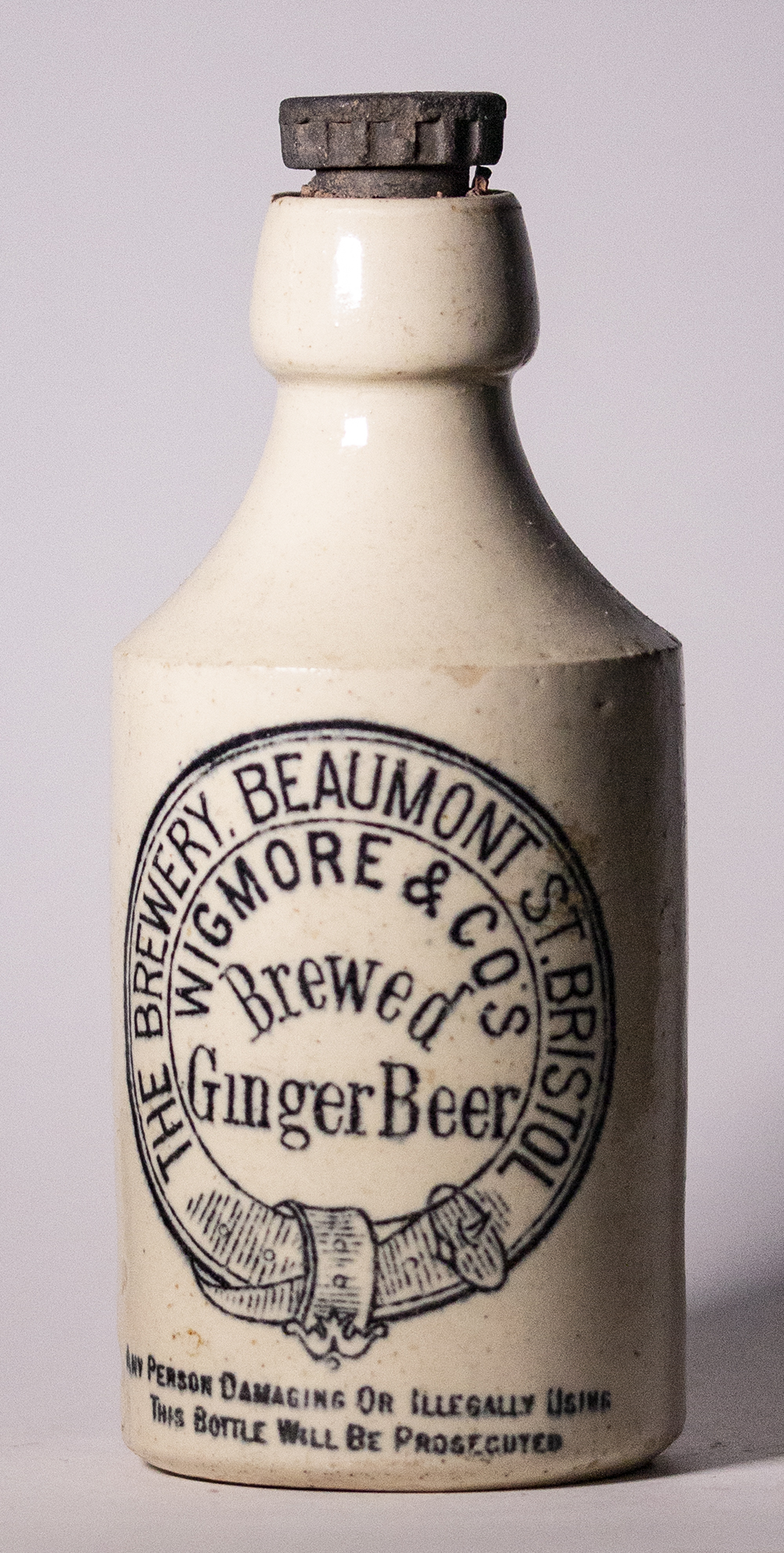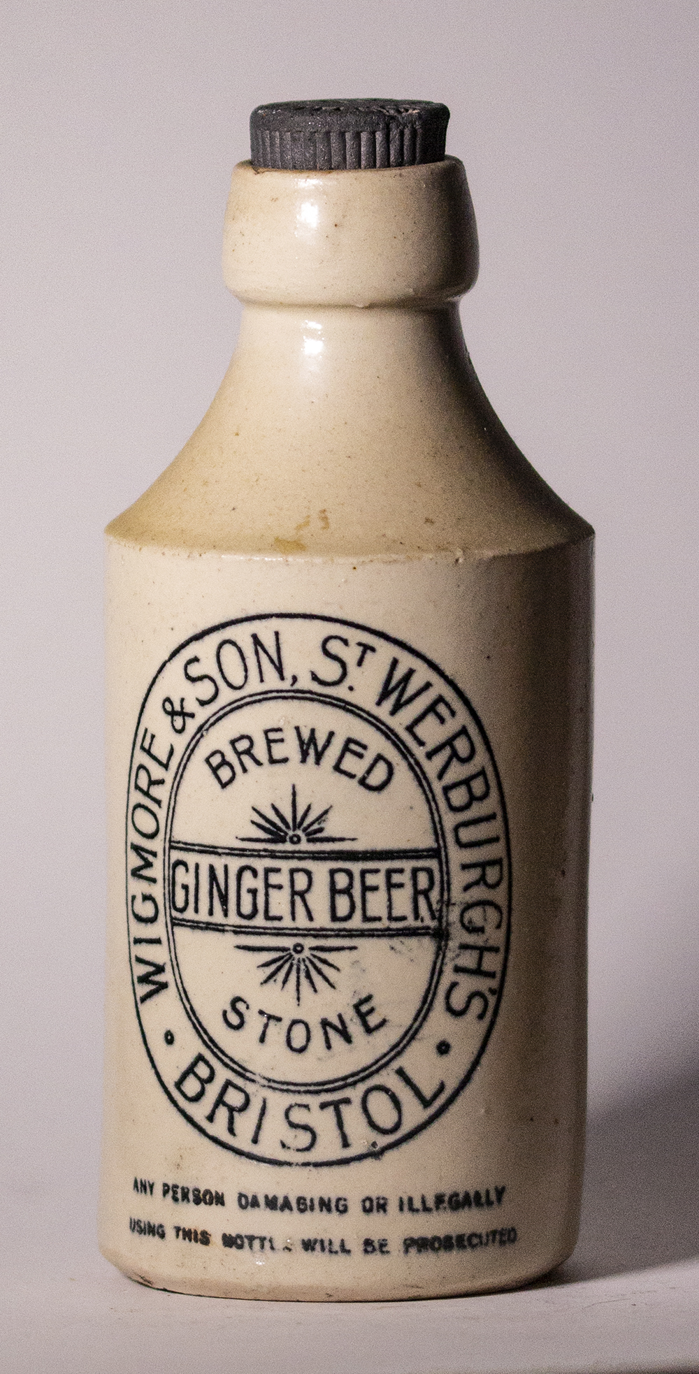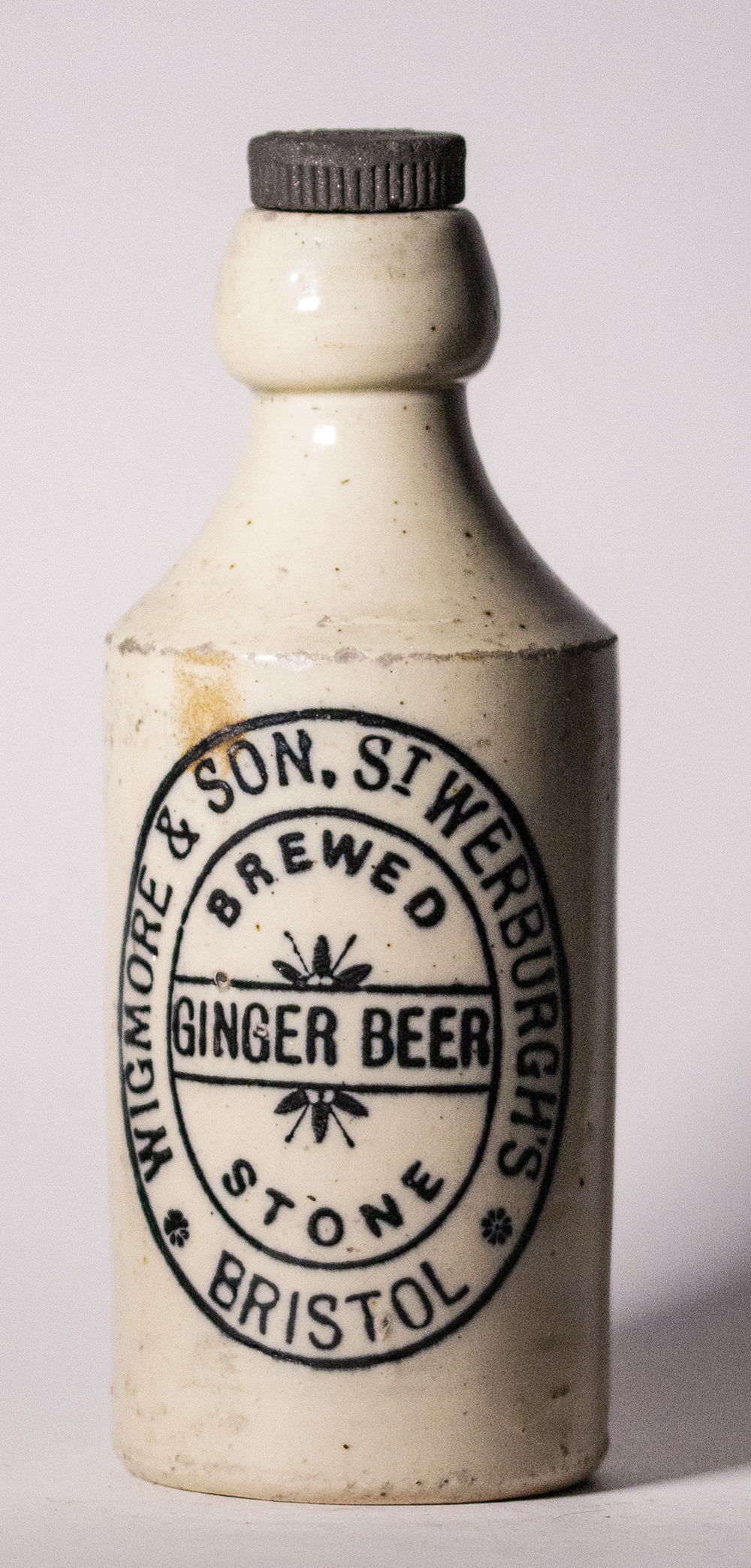 BREWED / GINGER BEER / STONE (in centre). Internal screw stopper. White glaze. Pottery: not marked. |