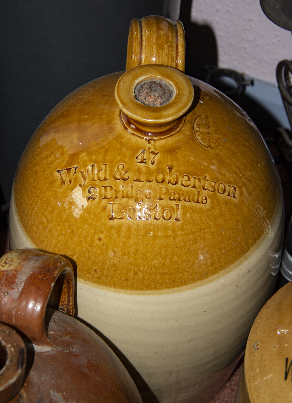 47 / Wyld & Robertson / 2 Bridge Parade / BRISTOL Potter: C & J. R. Price / Manufacturers / Bristol Two tone Bristol glaze. |
