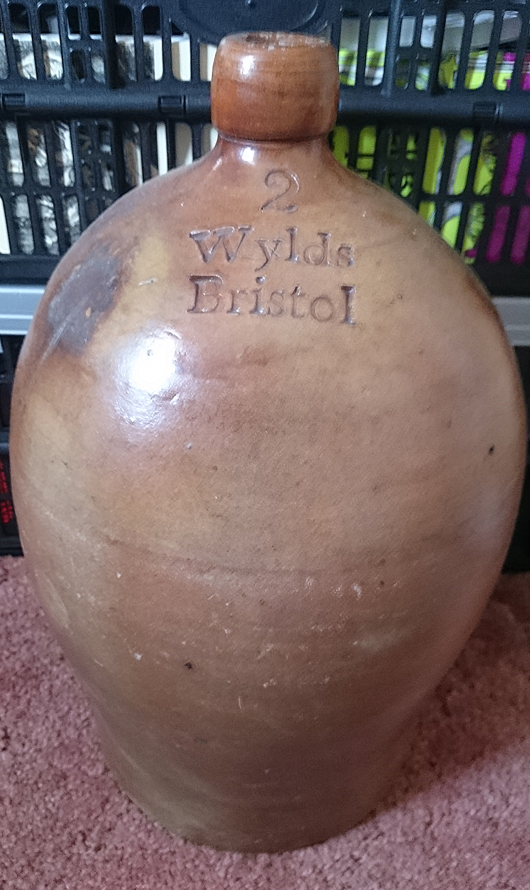 Impressed: 2 / WYLDS / 83 REDCLIFF STREET / BRISTOL Potter: Unknown. Brown Glaze. Date 1830-1840. Left image courtesy Paul De'Ath. |