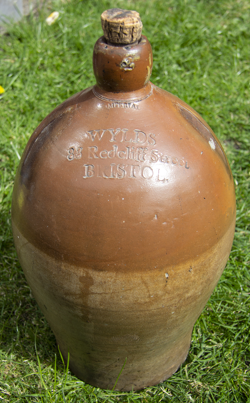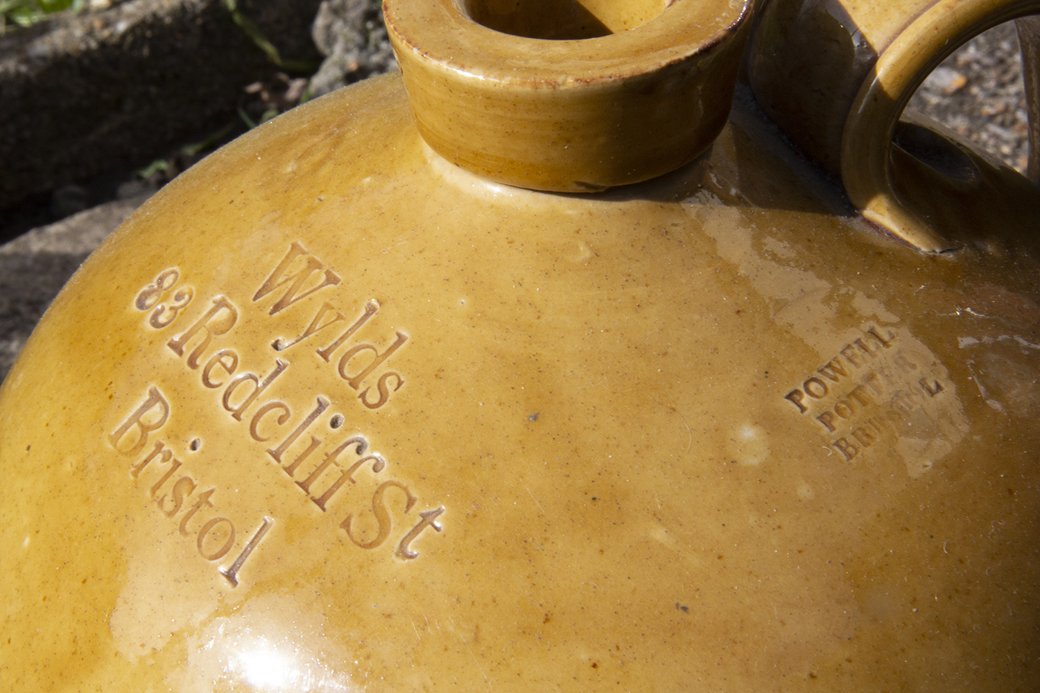 lip)/ WYLDS / 83 Redcliff St. / BRISTOL Potter: Likely Powell, Bristol. Intermediate Glaze. Date 1840s. Tap hole front at base (possible later addition). |