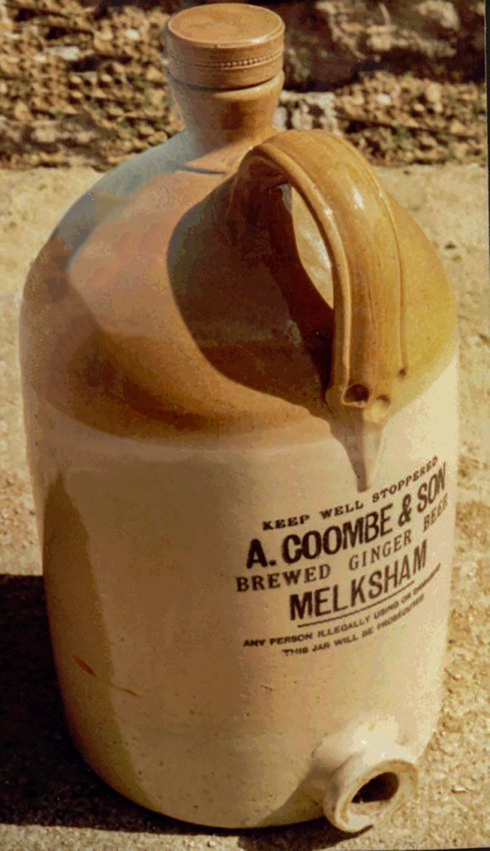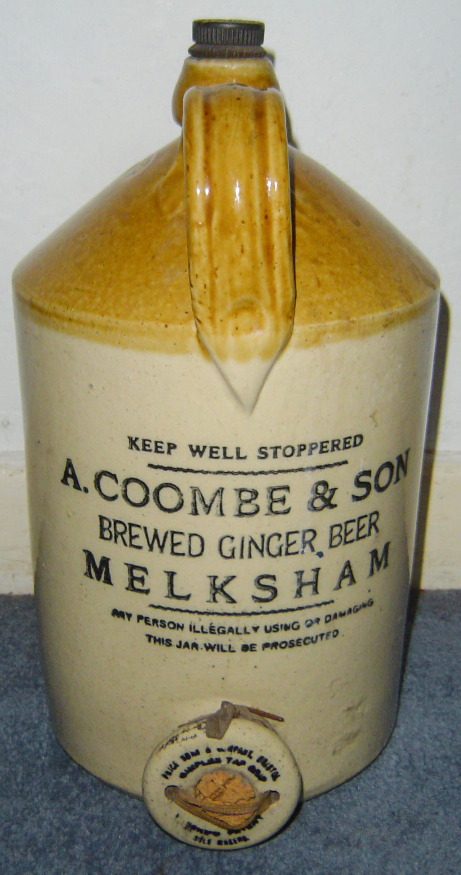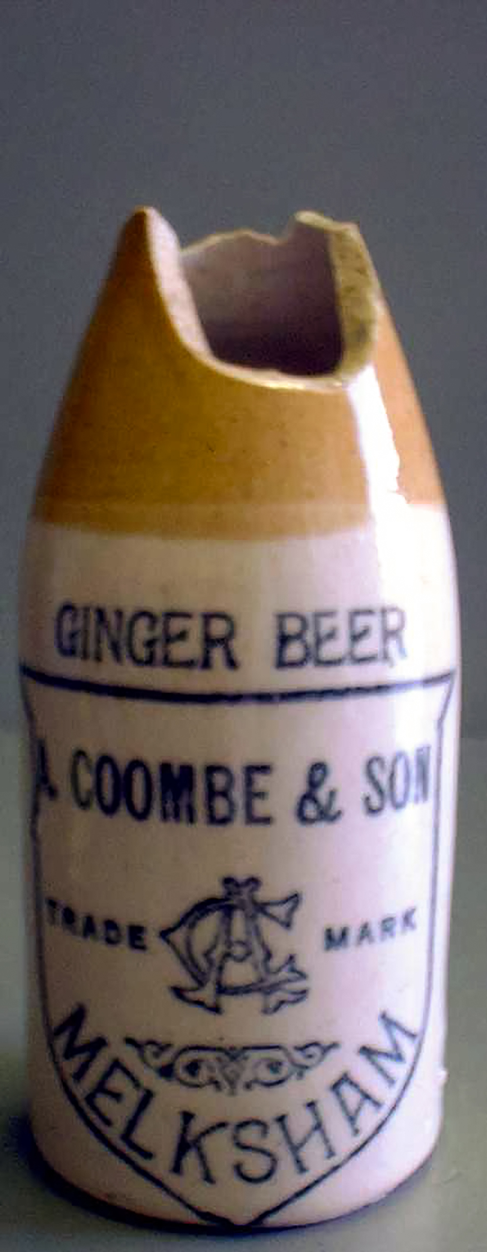 & SON / TRADE (AC) MARK / MELKSHAM. (in shield shape) Two tone glaze. Possibly Crown Cap stopper. |