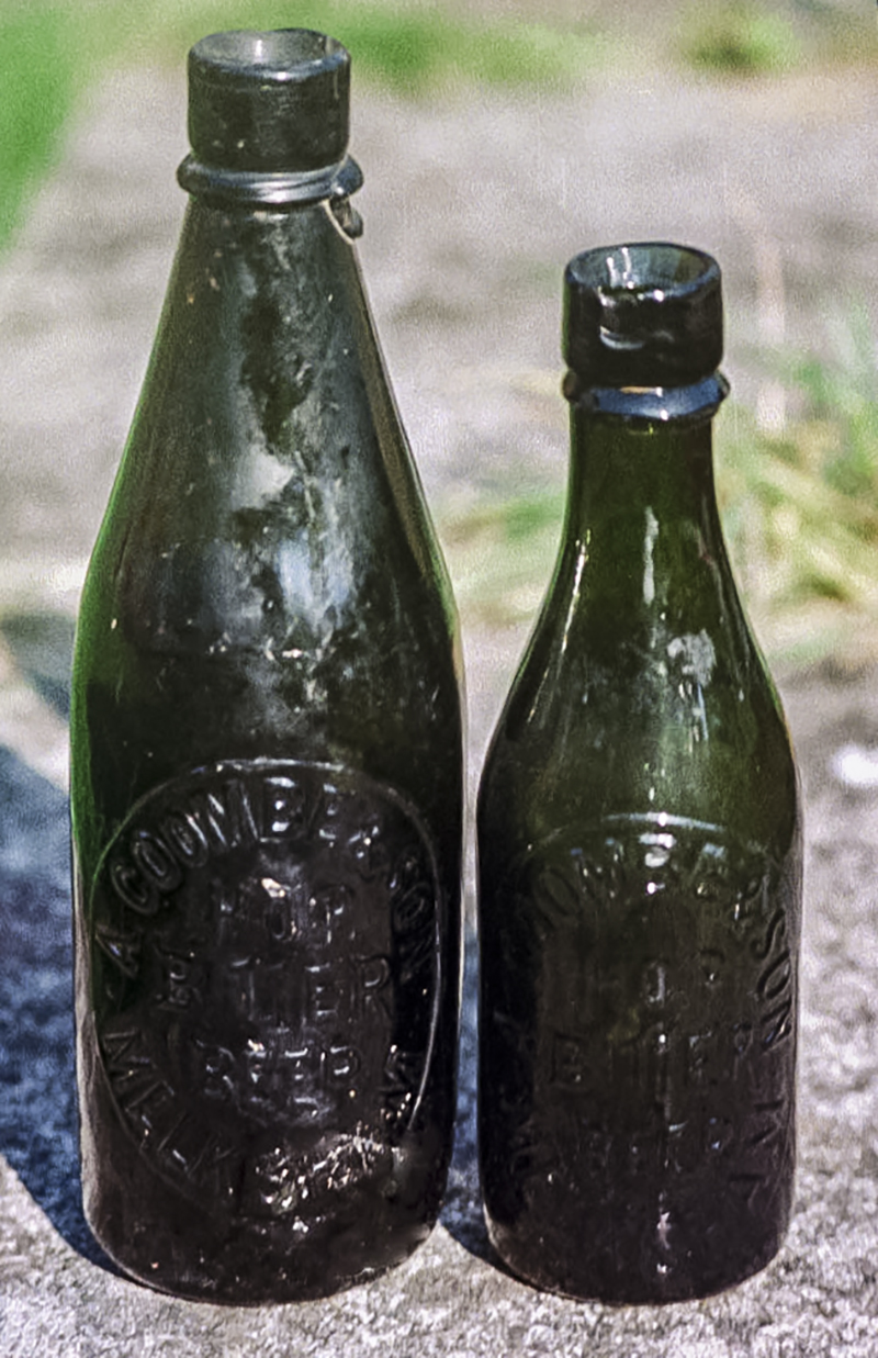 Albert remained as a grocer, draper and soda water manufacturer in the Market Place (1881 census), however the Soda Water works had moved from Bank Street to "The Ark", a former cloth industry site, by 1879. Albert & Mary had at least 5 children: Joseph Arscott Coombe (1873), Mary Maud Coombe (1874), Annie Grace Coombe (1877), Lucy Gertrude Coombe (1879), Cecil Ward Coombe (1886), but sadly many did not last long. Cecil died soon after birth, Mary Maud died in 1881 aged 7, and Annie Grace died in 1888 aged 11. Mary, Albert's mother died in 1894 aged 75. She had been a constant partner in the Grocery part of the business. It is clear that Joseph Arscott Coombe became the "& Son" part of the business of A. Coombe & Son, Mineral Water Manufacturers, and this was added to the bottles.
