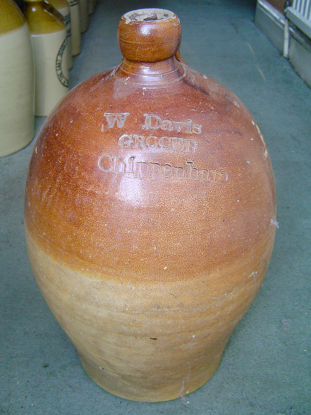 W. Davis / GROCER / Chippenham. Potter: ?. Bristol brownware unmarked. (Photos courtesy M. Squires collection). |