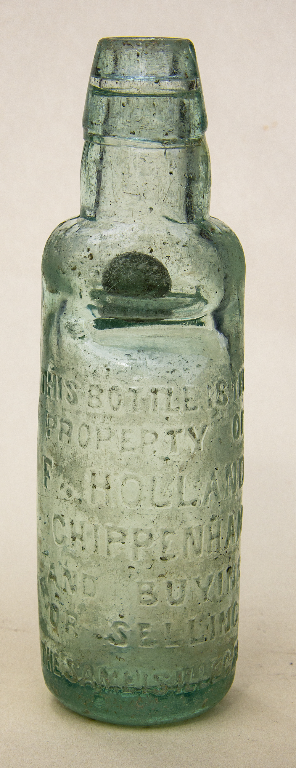 THIS BOTTLE / IS THE / PROPERTY OF / F. HOLLAND / CHIPPENHAM.