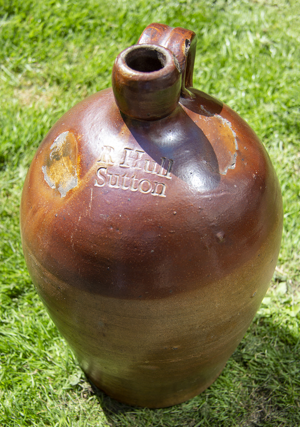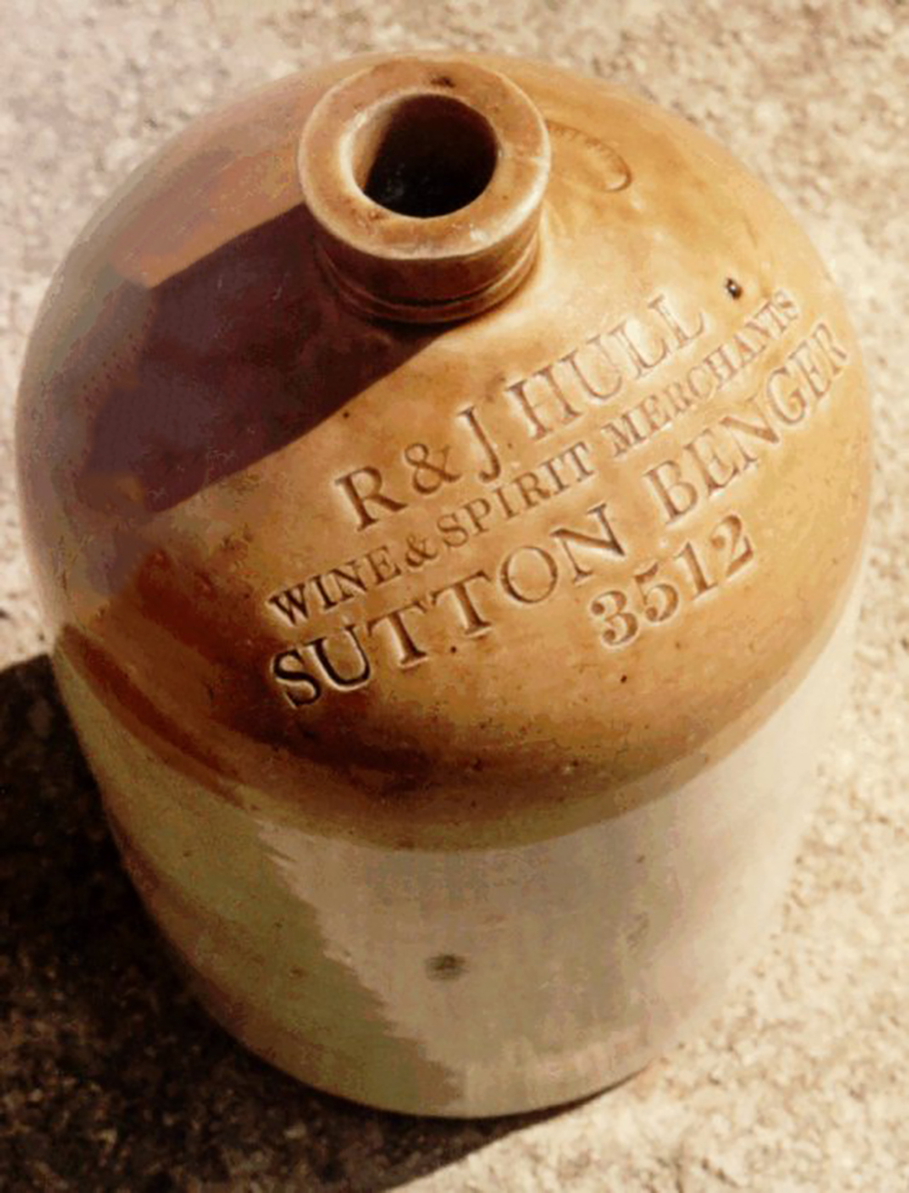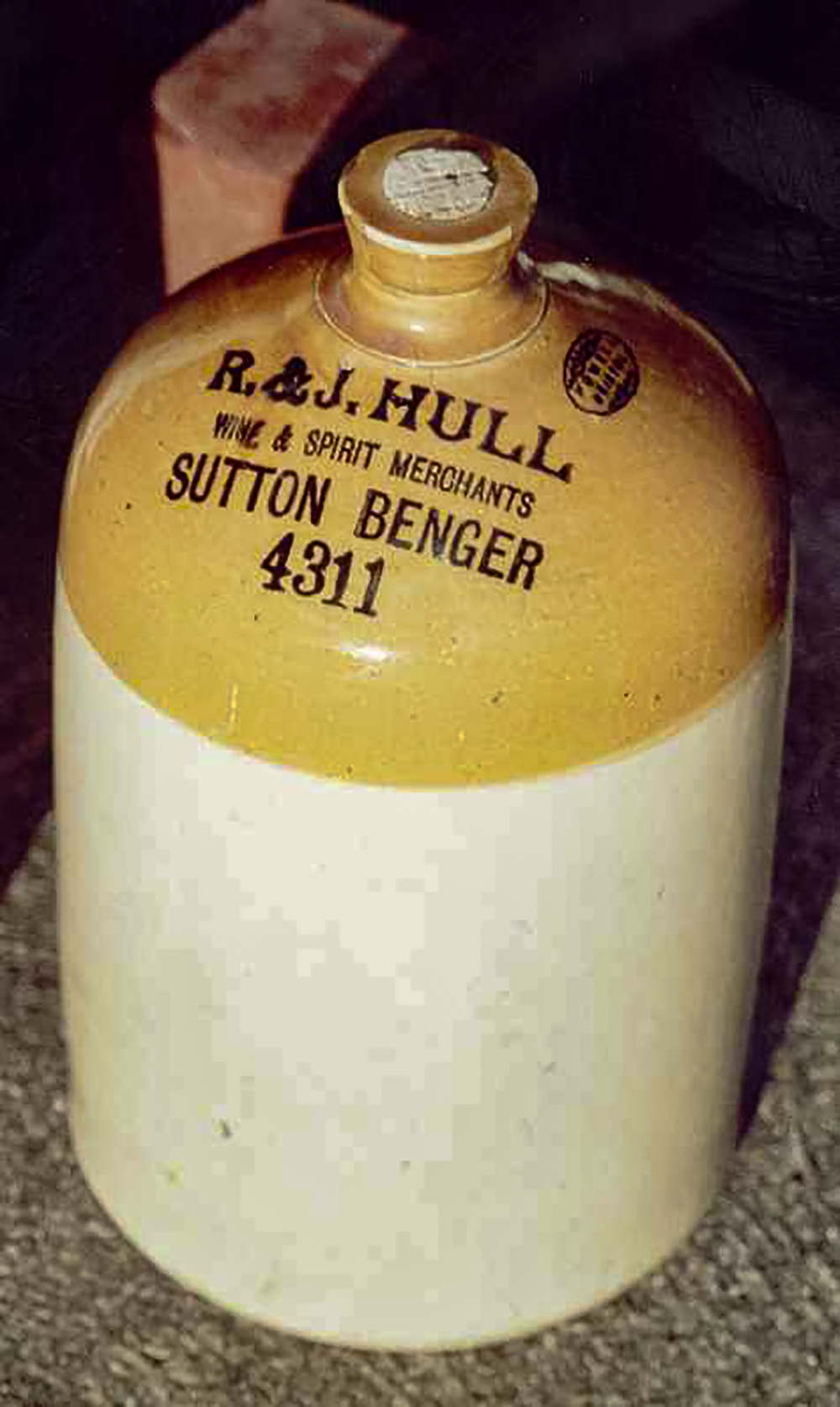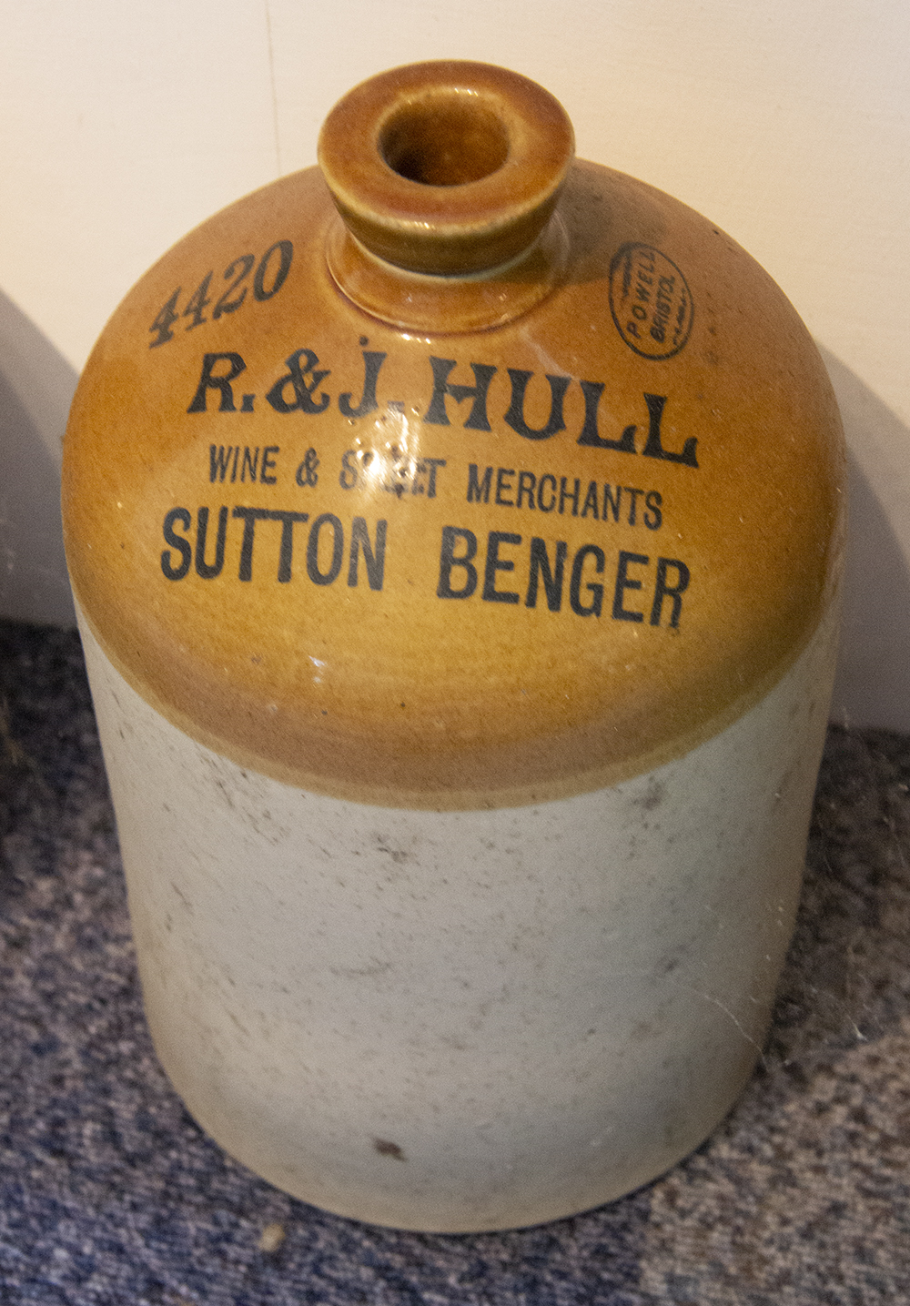 | Impressed: R & J HULL / WINE & SPIRIT MERCHANT / SUTTON BENGER / (number) : Powell, Bristol. |