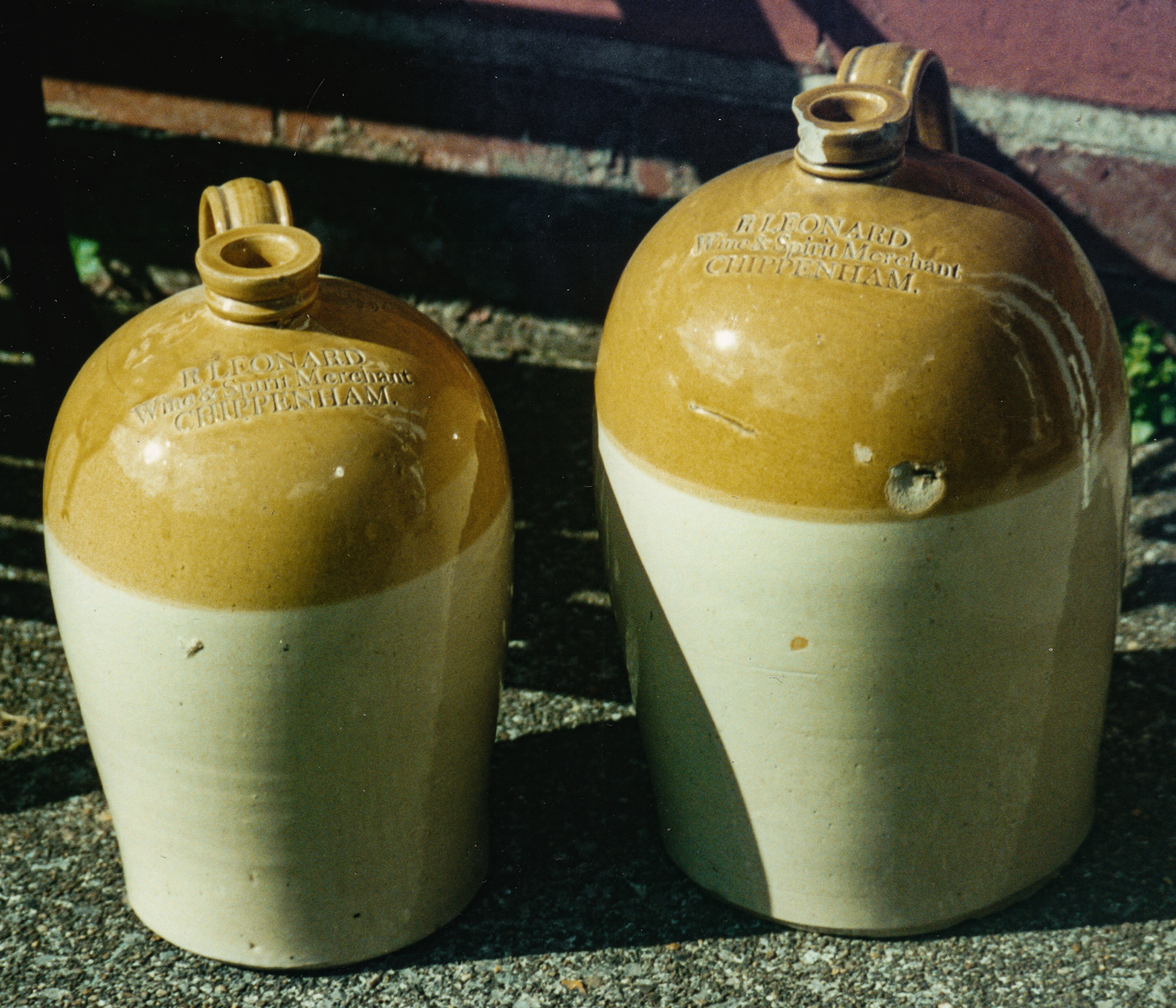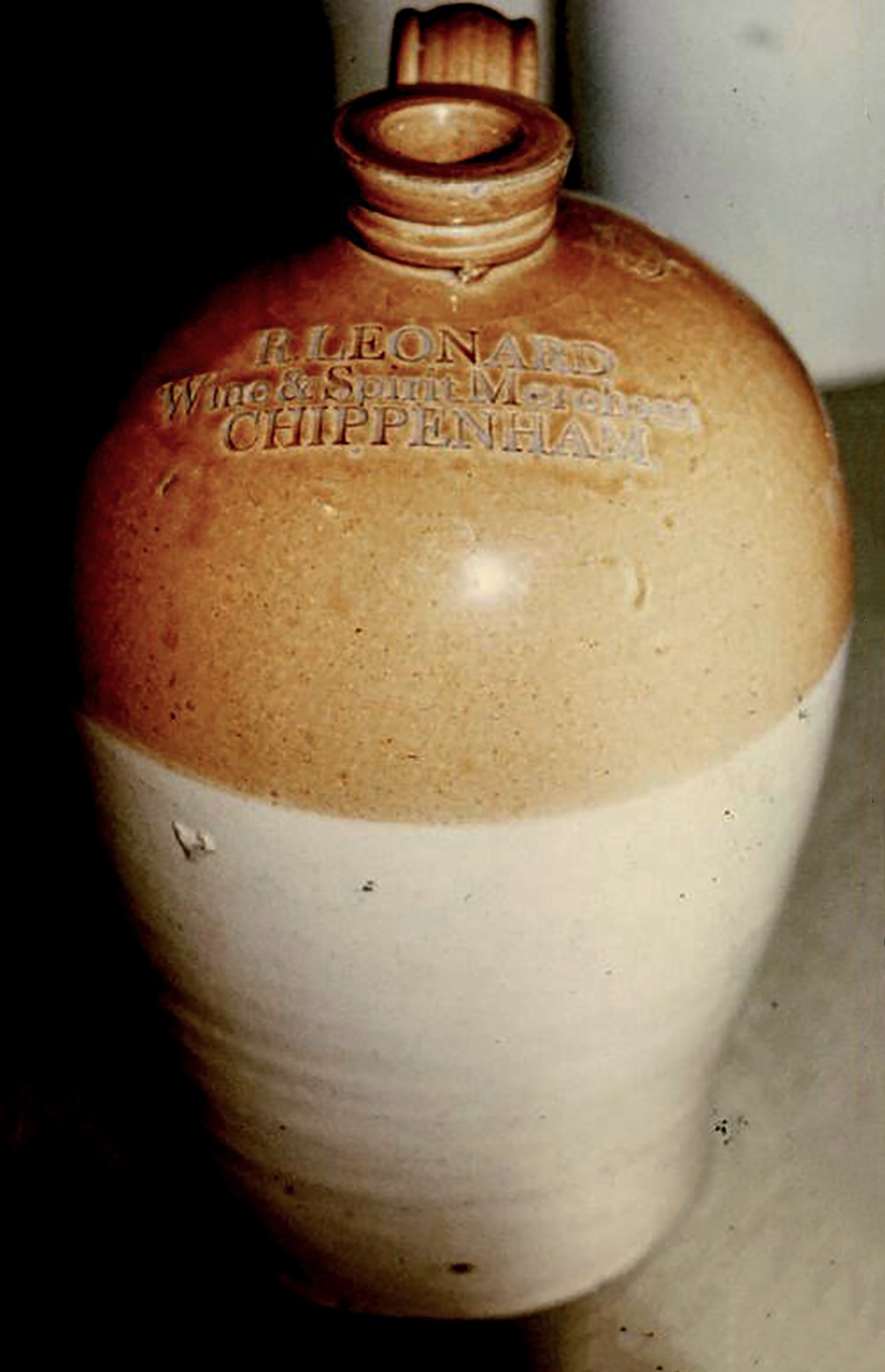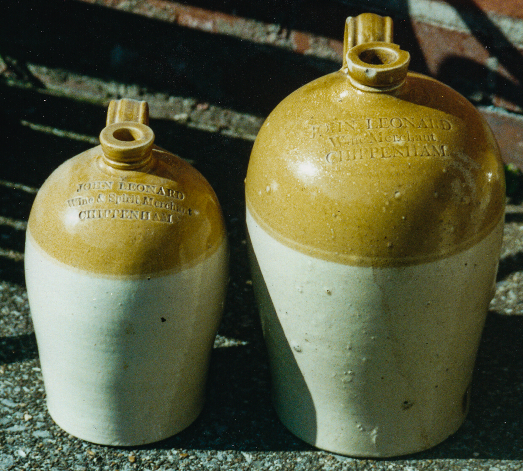 JOHN LEONARD / Wine Merchant / CHIPPENHAM . Potter: Powell Bristol. 1 Gal.: D. Sutton Collection (Left) |