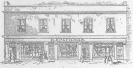 Mr. H. Spackmans' hands for the past seventy years. Eligibly located, the extensive premises consist of two adjoining spacious shops, having a total frontage of no less than sixty feet. The shops form distinct departments, but inter-communicate, and everywhere there are evidences of the care and attention bestowed by the proprietor in arranging for the reception, prompt service, and general convenience of his numerous patrons. General groceries and prime provisions, everday drapery goods, including a special family mourning and funeral furnishing department, and outfittings for both ladies and gentlemen are sold at the very lowest possible prices consistent with equitable trading. Every branch of the business receives the personal Supervision of Mr. Spackman (who, it may be mentioned, is an esteemed member of the Corsham School Board), and is conducted with a careful competence that is well calculated to preserve all the creditable traditions of this old and well-reputed house. (The Ports of the Bristol Channel,1893) |