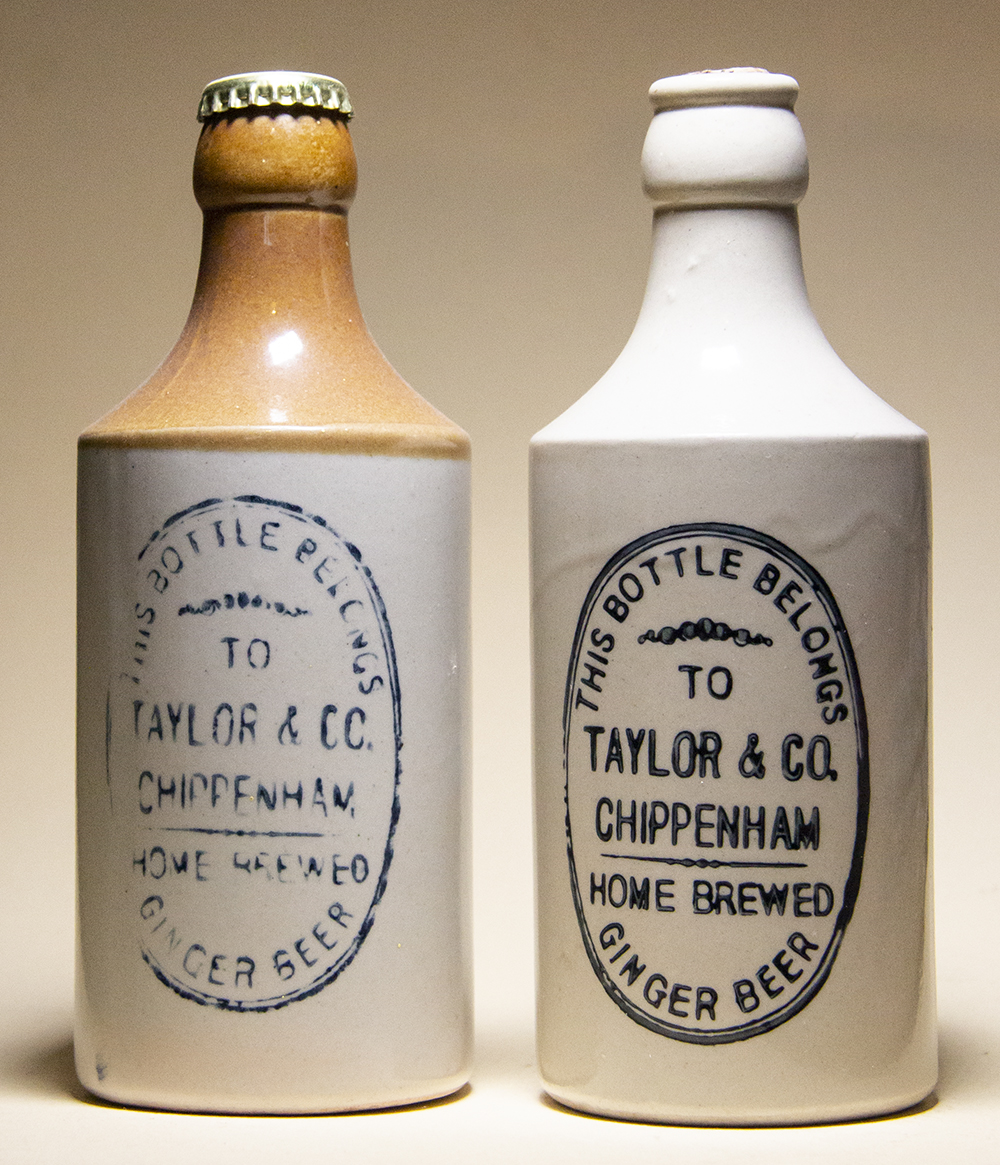 / TO / TAYLOR & CO / CHIPPENHAM / HOME BREWED / GINGER BEER. Potter: Price, Bristol. Variations: Crown Cap & Internal Screw Stopper. |