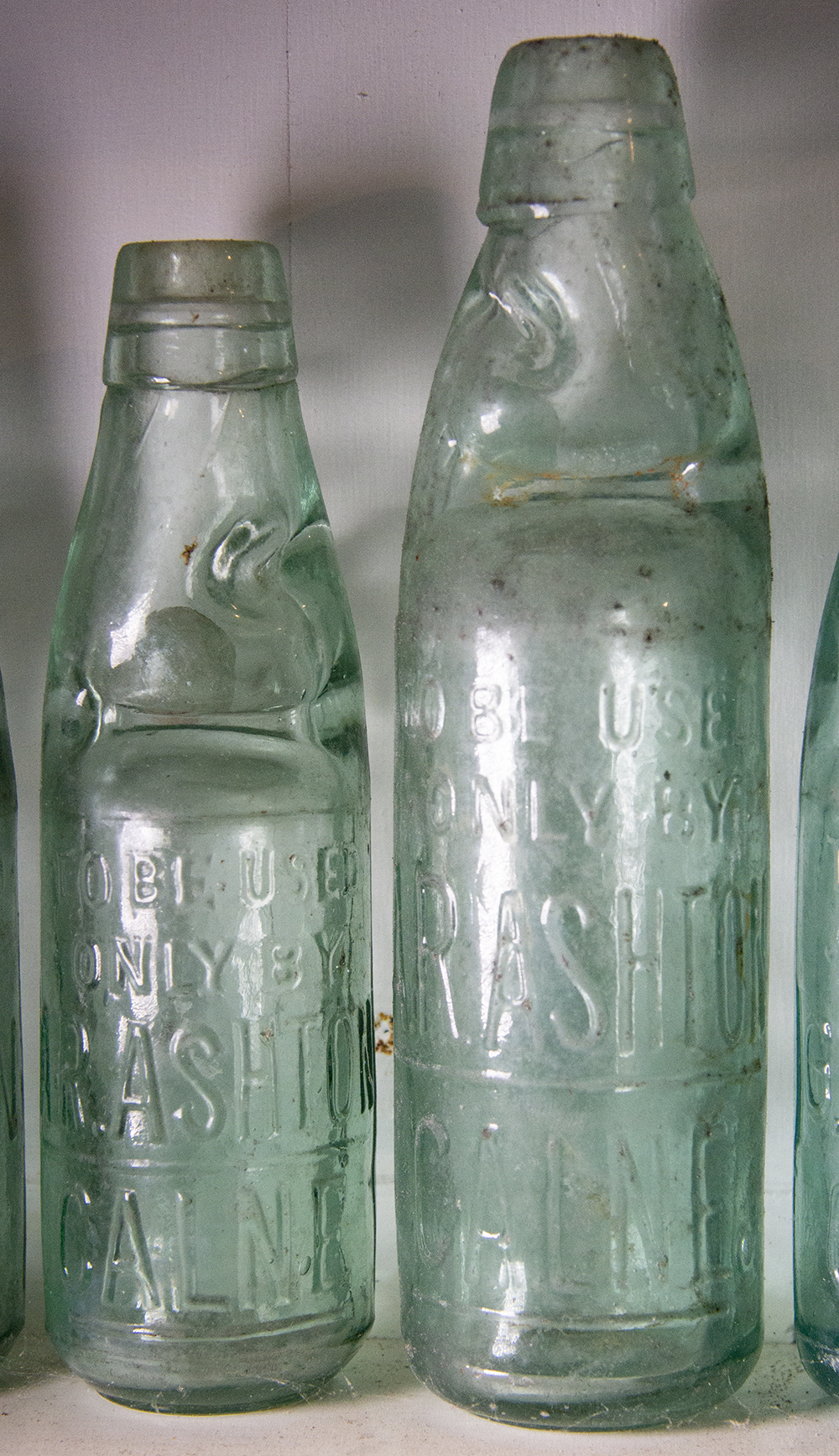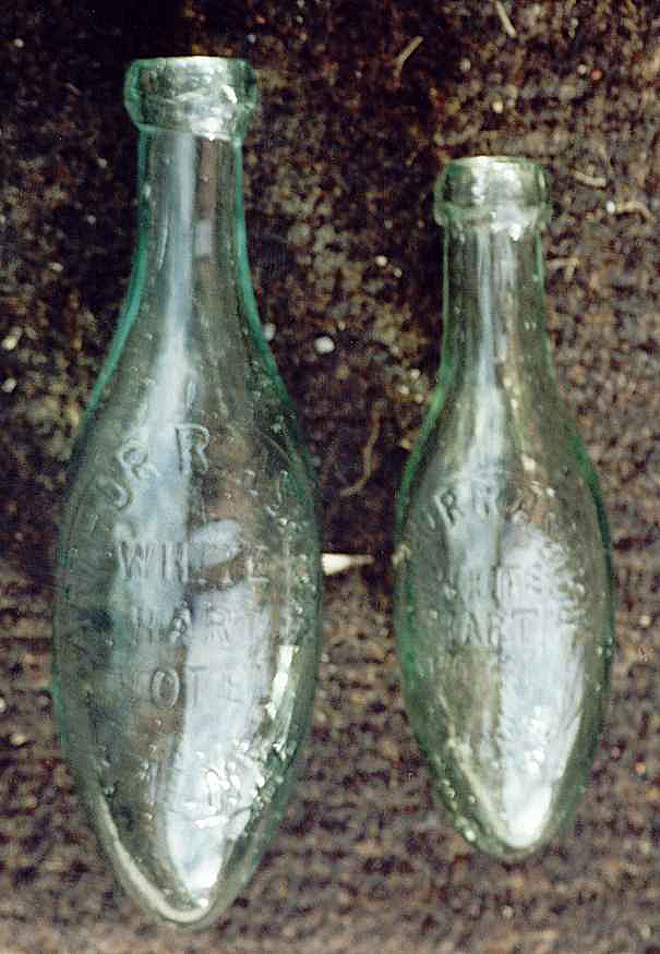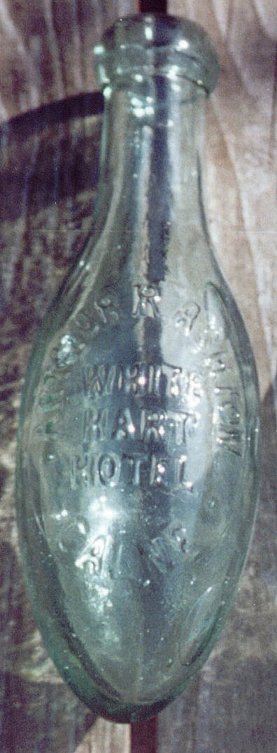 | Embossing: ARTHUR R. ASHTON / WHITE / HART / HOTEL / CALNE. Glassmakers: not marked. Length: 7.5" & 9.25". |